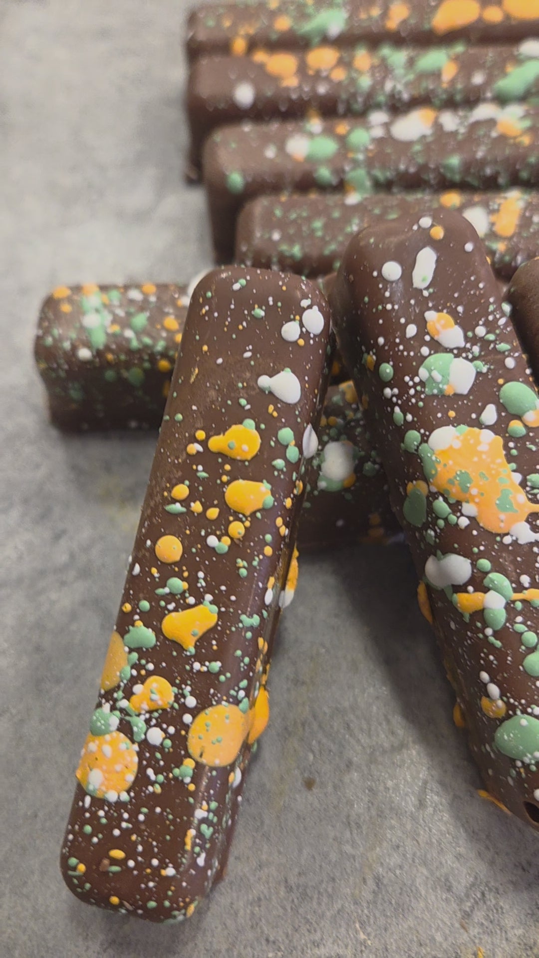 Crafted by hand using Montreal’s own Yupik pistachio butter, handmade silky pistachio cream, tahini paste, coconut oil, a pinch of salt, and crispy dry Kataifi dough. Wrapped in a milk or dark chocolate shell to keep things perfectly balanced.